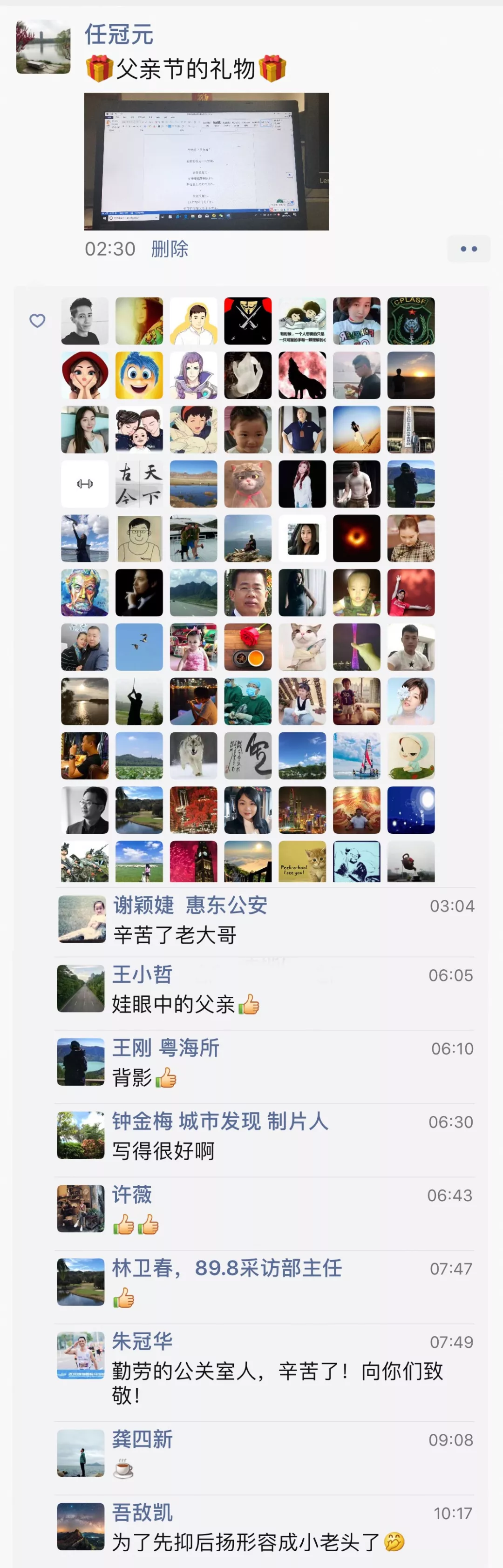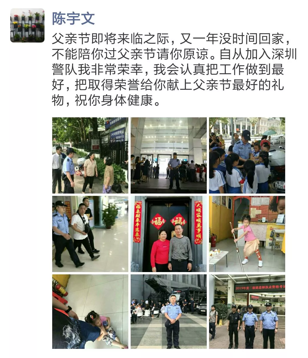 ▲機訓三中隊輔警陳宇文朋友圈