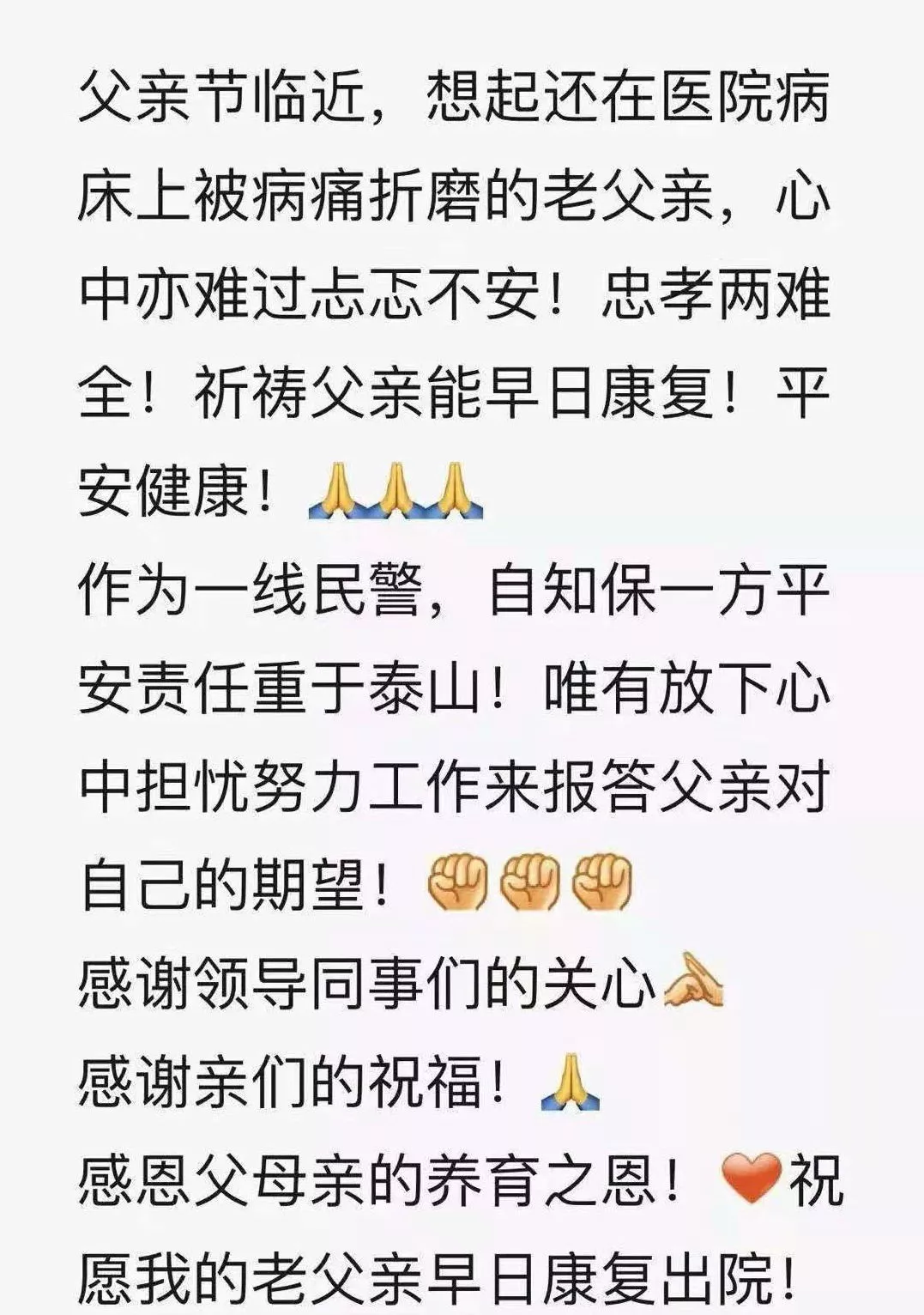 ▲蓮花派出所民警何振忠朋友圈