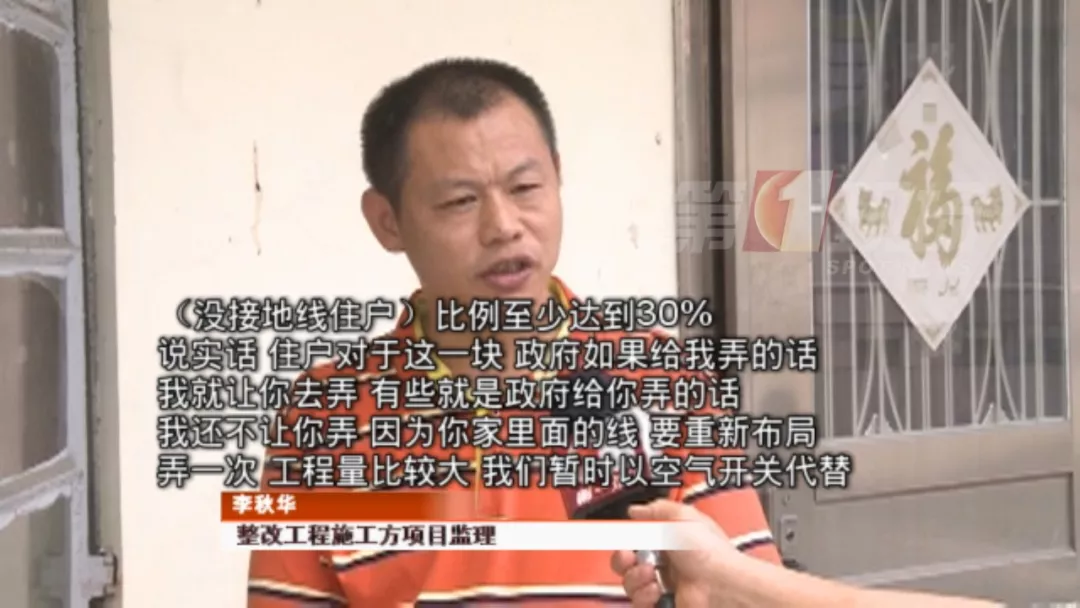 施工方表示,政府出資整修的是公共區(qū)域,他們在施工過程中發(fā)現(xiàn)很多房子存在電線老舊、沒有地線等隱患,但是房東不愿意出錢整改,唯有暫時以空氣開關(guān)代替漏電開關(guān)。