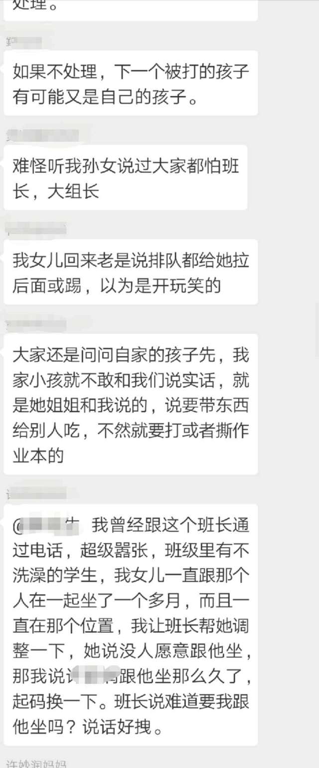 王先生把女兒的情況反映到家長群里,結(jié)果群里的家長紛紛表示,自己的孩子也反映當天遭遇到班長的毆打,有的孩子甚至“腿疼得難以走路”。