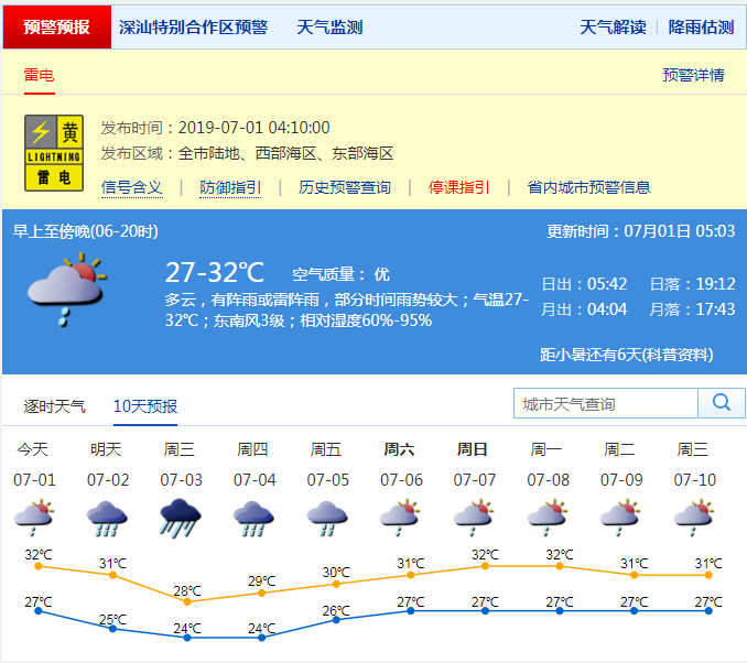 深圳新聞網(wǎng)2019年7月1日訊 深圳市氣象臺于2019年07月01日07時(shí)45分在全市取消高溫黃色預(yù),延續(xù)前幾天的高溫天氣暫時(shí)緩解。