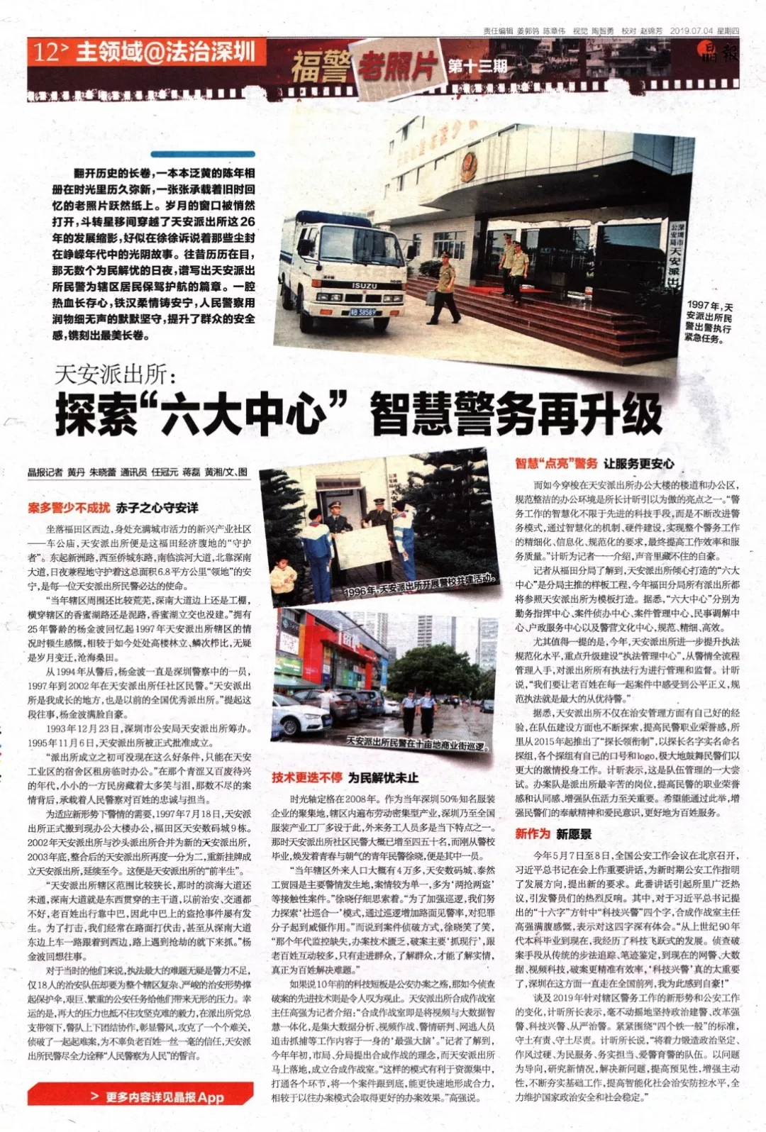 “當(dāng)年轄區(qū)外來(lái)人口大概有4萬(wàn)多,天安數(shù)碼城、泰然工貿(mào)園是主要警情發(fā)生地,案情較為單一,多為‘兩搶兩盜’等接觸性案件。”徐曉仔細(xì)思索著?!盀榱思訌?qiáng)巡邏,我們努力探索‘社巡合一’模式,通過(guò)巡邏增加路面見(jiàn)警率,對(duì)犯罪分子起到威懾作用?!倍f(shuō)到案件偵破方式,徐曉笑了笑,“那個(gè)年代監(jiān)控缺失,辦案技術(shù)匱乏,破案主要‘抓現(xiàn)行’,跟老百姓互動(dòng)較多,只有走進(jìn)群眾,了解群眾,才能了解實(shí)情,真正為百姓解決難題?!?/p>