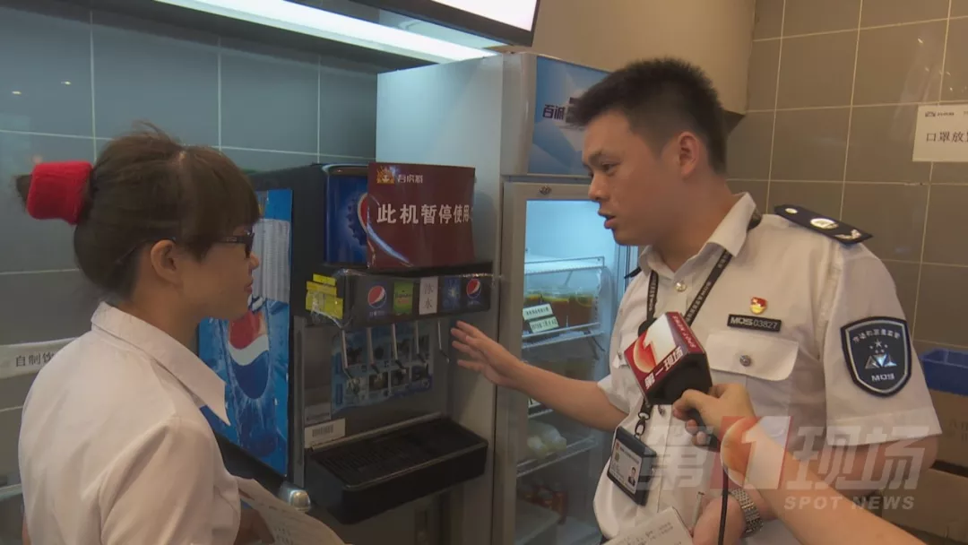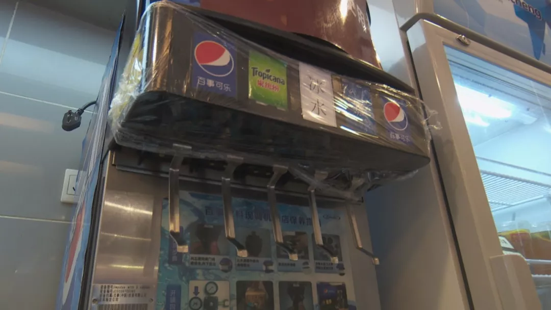 今天中午,記者跟隨轄區(qū)市監(jiān)所執(zhí)法人員來到涉事門店現場檢查。據了解,2號事發(fā)后,店里的這臺飲料機已經暫停使用,目前飲料出口是用保鮮膜封住的。店方稱,飲料機,每個月由百事可樂廠家人員深層清洗一次,他們的員工是每天對飲料機的糖漿管道和濾嘴進行清洗,都有清洗記錄。