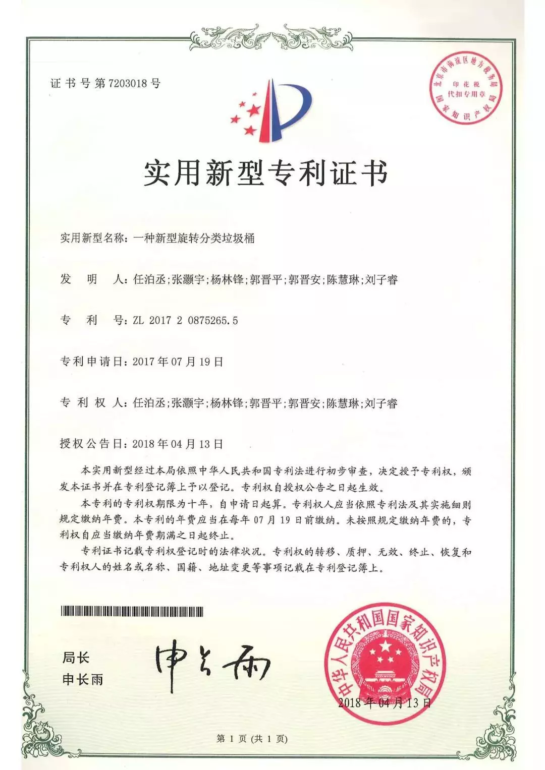 智能垃圾桶獲國家專利