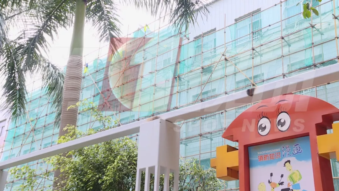 工人卻在教學(xué)樓進行外墻施工