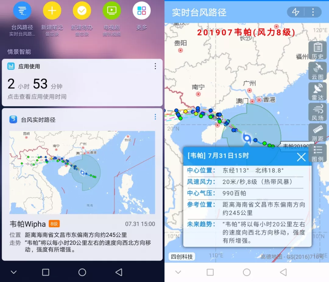 get華為手機臺風路徑服務直達!