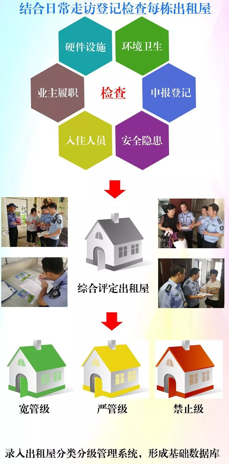 嚴(yán)格管理。社區(qū)巡查力量對嚴(yán)管級出租屋每周走訪巡查一次,發(fā)現(xiàn)義務(wù)申報(bào)人未按要求申報(bào)居住信息、發(fā)現(xiàn)各類安全隱患信息及時通報(bào)有關(guān)職能部門處置。