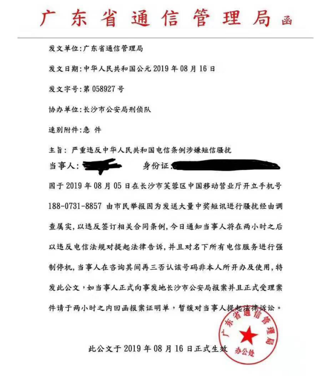 坪山坑梓轄區(qū)李女士接到一個(gè)自稱(chēng)是廣東省通信管理局的電話,告知她的手機(jī)號(hào)碼涉嫌發(fā)送大量騷擾信息被人舉報(bào),現(xiàn)由長(zhǎng)沙市公安局立案調(diào)查。