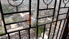 經過現場測量,這個兒童房的落地窗長約1.7米,寬約1.8米,樓下是一條小路,正對著一所幼兒園和一所小學,如果玻璃完全爆裂,后果不堪設想。