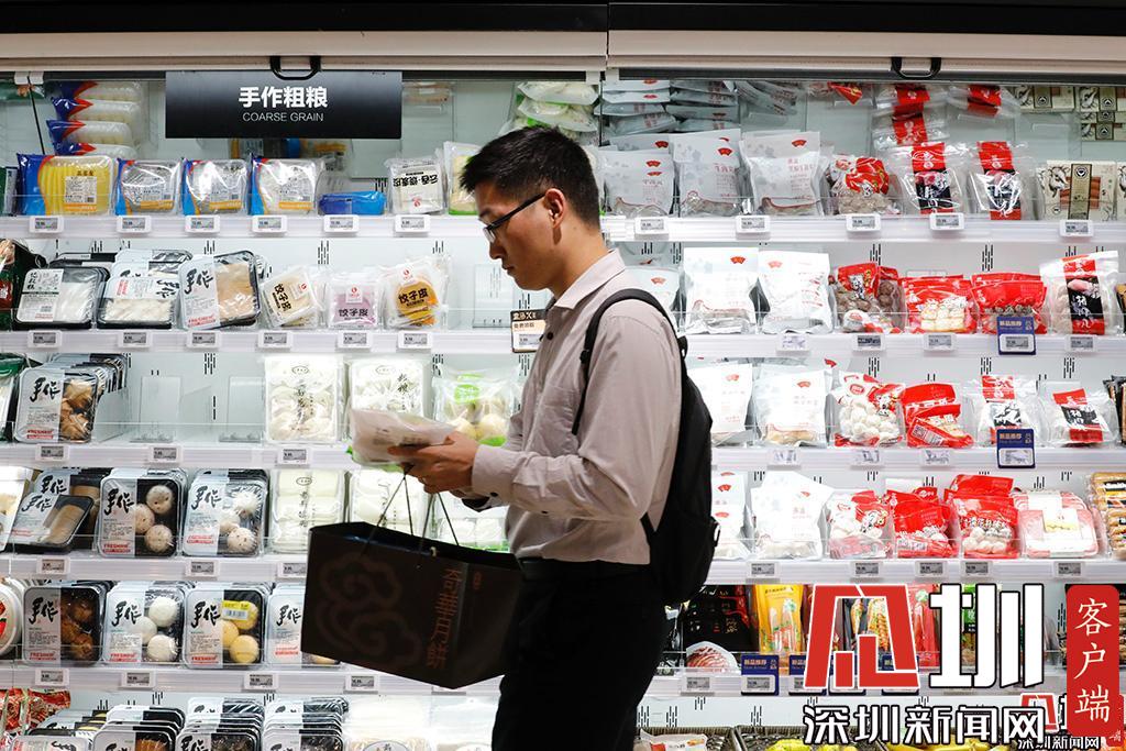 生鮮超市的冷柜前,一位市民正在選購(gòu)商品