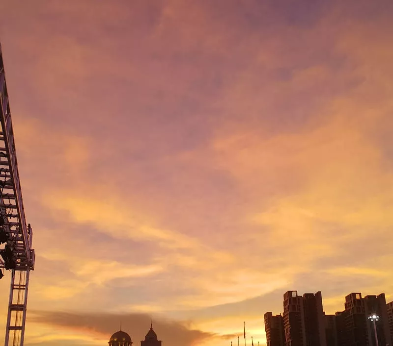 #深圳晚霞#應(yīng)該就是在氣象上所說的臺風(fēng)來臨前的“反暮光”。它一般在臺風(fēng)來襲前一兩天的日落時分出現(xiàn),西方地平線下發(fā)出數(shù)條放射狀、紅藍(lán)相間的光芒,發(fā)射到天頂,然后收斂于東方與太陽對稱的地方,映紅整個天空。