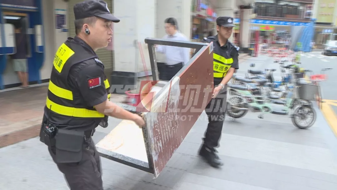 記者以普通市民的身份,投訴了這家門店的違規(guī)經營情況。10分鐘后,東門街道執(zhí)法隊就來到了現場,向商家開具了整改通知,拆除了占道的鍋臺,并暫扣了一批經營用具。