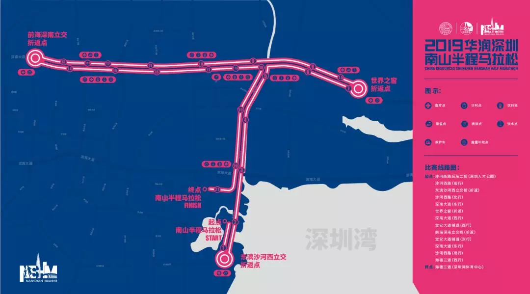 值得一提的是,今年南馬的路線較去年略有調(diào)整,賽事線路整體呈T字形,賽道起點在沙河西路后海二橋(深圳人才公園東門),賽道終點在海德三道(深圳灣體育中心),賽道主體由沙河西路和深南大道組成一縱一橫,途徑深圳灣總部經(jīng)濟片區(qū)、高新技術園、大沙河生態(tài)長廊、世界之窗、南頭古城等多個地標性建筑,不僅彌補了往年沒有經(jīng)過深圳灣海域的遺憾,讓選手在賽跑之余一覽灣區(qū)海景,更向選手與觀眾充分展示南山自然人文科技之美。