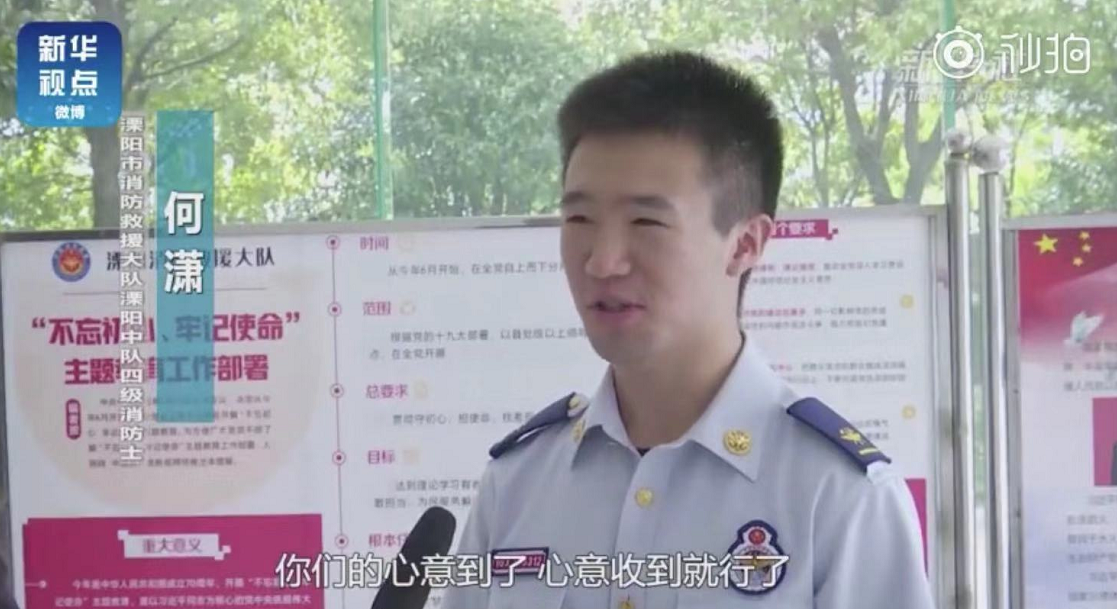 “你們的心意收到了,不要再送禮物啦,送給身邊那些也在這么炎熱的天氣里工作的人們挺好的?!?/p>