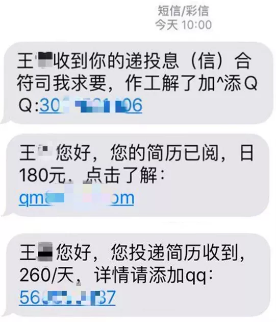 內(nèi)容更是大同小異,都是要求應(yīng)聘者添加某個(gè)QQ號(hào)或者關(guān)注某個(gè)微信公眾號(hào)。