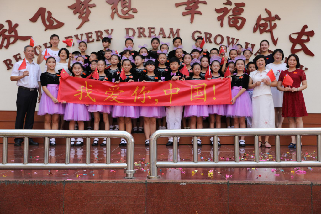 活動最后,全體師生用歌聲呼應,揮舞著國旗,綻放著笑臉,高唱心中贊歌,幸福和自信洋溢在每名師生的臉上。
