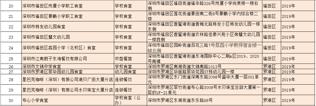 除了新增的A級餐廳外,該局還公布了降級餐廳名單:深圳市龍崗區(qū)龍崗街道培英幼兒園食堂因不符合餐飲服務(wù)食品安全量化等級A級要求予以降級。以及1家變更單位名稱的A級餐飲服務(wù)單位:原名稱為深圳市光明區(qū)培真幼兒園食堂的單位變更名稱為:深圳市光明區(qū)鳳凰街道嘉明幼兒園食堂。