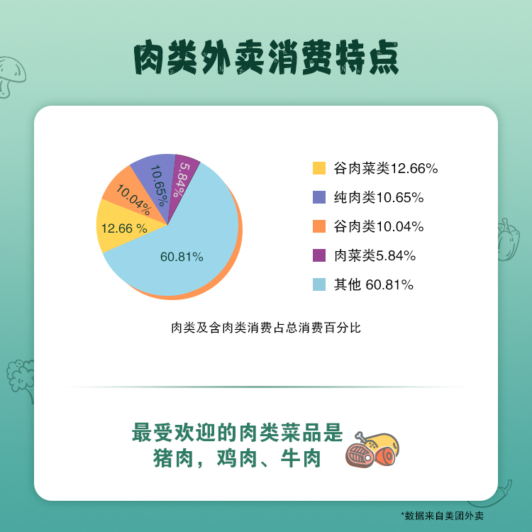 《我國10城市高頻外賣消費菜品膳食結(jié)構(gòu)分析》報告研究指出十城市Top50消費菜品中,排第一的均為米飯,深圳居民對米飯及米制品的喜愛全國排名第一;十城中,油條在所有城市都進入了Top50;深圳和上海市民早餐最愛油條;珠海、哈爾濱居民尤其偏愛肉類食品,在訂制純?nèi)忸愂称返念l次,哈爾濱城市排名最高,谷薯類食品對哈爾濱居民的吸引力比全國其他城市低;西安、北京更愛選擇主食和菜肴搭配,北京居民對肉類食物的興趣度比全國其他城市低。此外,整體來看,最受歡迎的肉類是豬肉、雞肉、牛肉,最受歡迎的蔬菜是白菜、包菜、西紅柿。