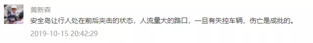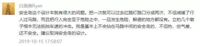 安全島絕對(duì)安全么,顯然不是。事實(shí)上,設(shè)置安全島的初衷是為了提升行人過街效率和道路利用率,它是適應(yīng)越來越寬的城市道路,在行人與車之間尋求通行效率最大化的產(chǎn)物。以10月15日的車禍為例,面對(duì)動(dòng)能巨大的奔馳越野車,哪怕是修一堵高墻恐怕也難阻擋。因此,所謂安全島,只能做到相對(duì)安全,而非不可逾越的屏障。