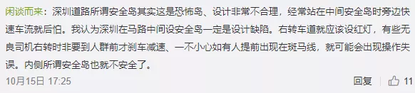 那么,安全島能不能做到相對(duì)更安全呢。目前深圳很多安全島闊度低于1.5米的國(guó)際安全標(biāo)準(zhǔn),一旦難以容納等候過路的行人,車流就會(huì)對(duì)行人構(gòu)成威脅,是不是可以建的更大一些。另外,安全島是不是可以建得更結(jié)實(shí)。不敢說一定要能抵擋泥頭車大貨車的洶洶氣勢(shì),至少一般的小汽車如果出現(xiàn)“航向偏差”,我們的安全島可以有效緩沖甚至阻停。