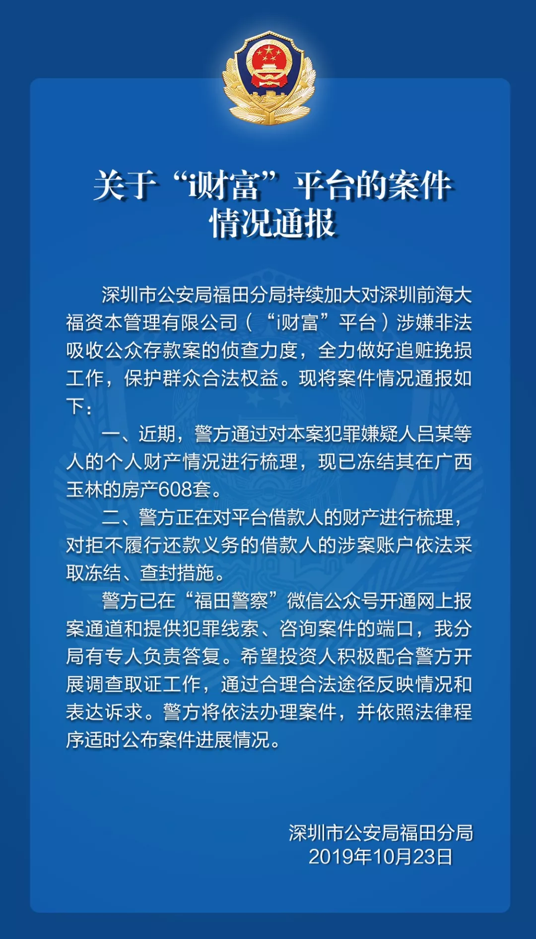 關(guān)于“i財(cái)富”平臺的案件情況通報(bào)