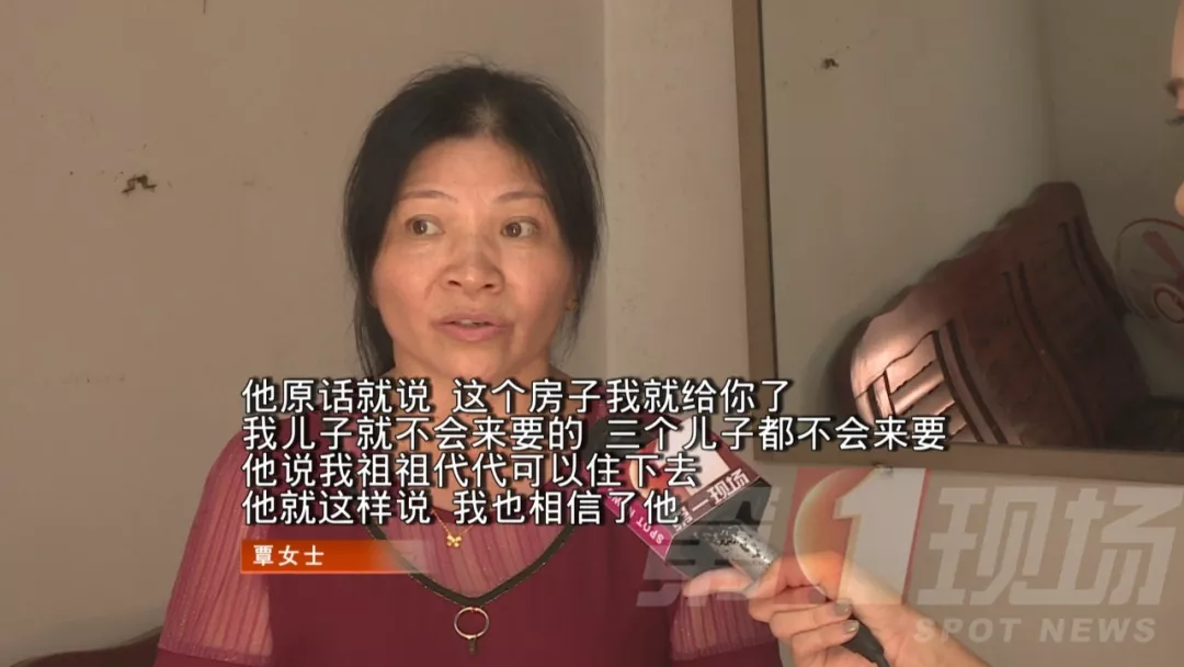 覃女士說(shuō),在照顧黃先生期間,相處的挺愉快,只是好景不長(zhǎng),黃先生在一次意外中摔倒,并于2002年離世。覃女士告訴記者,臨終前黃先生為了報(bào)答她的照顧,曾承諾將自己住的房子無(wú)條件給覃女士居住。