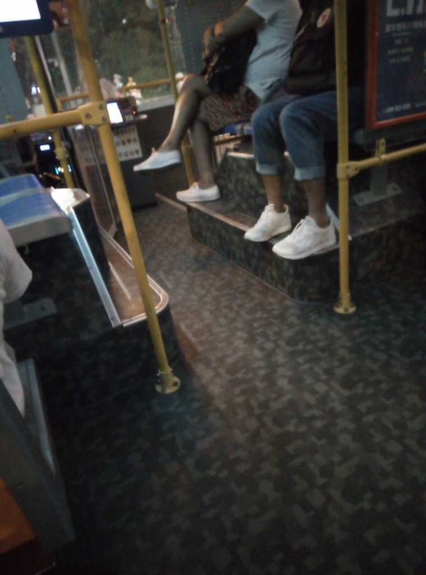 由于這幾個(gè)座位較高,蹺起的二郎腿自然也低不了,伸到了通道中間,有成人的膝蓋部高,給通行造成不便。這一舉止, 對當(dāng)事人來說或許只是一個(gè)習(xí)慣性的動(dòng)作, 但在公交車這個(gè)公共場合,不僅不雅觀, 也給本不寬敞的通道設(shè)下“障礙”,導(dǎo)致其他乘客通行艱難。