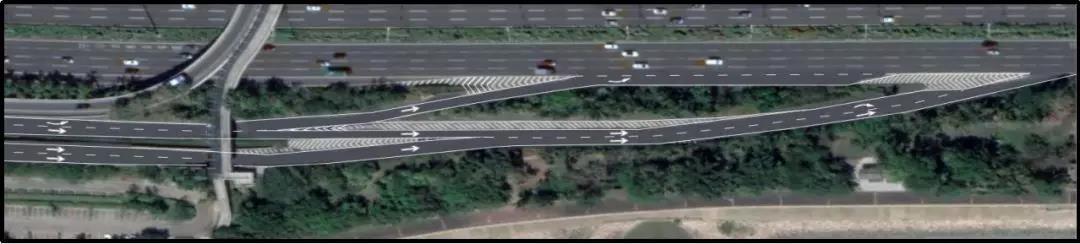 同時(shí),造成沙河西右轉(zhuǎn)濱海大道處擁堵的,還有一個(gè)原因是主道車流與原輔道車流匯合后,局部交織沖突嚴(yán)重。為此,交警壓縮了輔道綠化隔離帶,將2車道擴(kuò)寬為3車道!原輔道車流無需變道,即可順利通行。