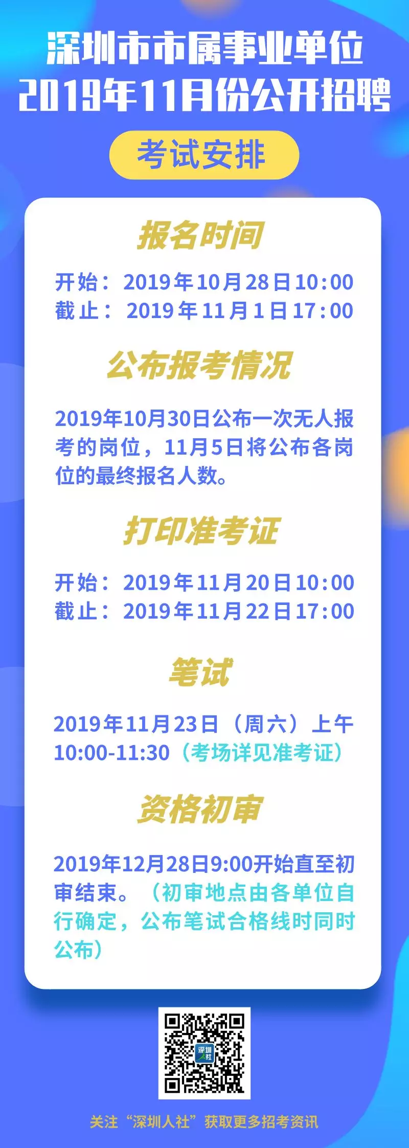 見圳客戶端·深圳新聞網(wǎng)2019年10月25日訊(見圳客戶端深圳新聞網(wǎng)記者 何暢)據(jù)“深圳人社”微信公眾號消息,深圳市市屬事業(yè)單位2019年11月份公開招聘公告正式出爐。此次一共招聘管理和專業(yè)技術崗位工作人員122名,面向社會人員和應屆生的崗位均有。