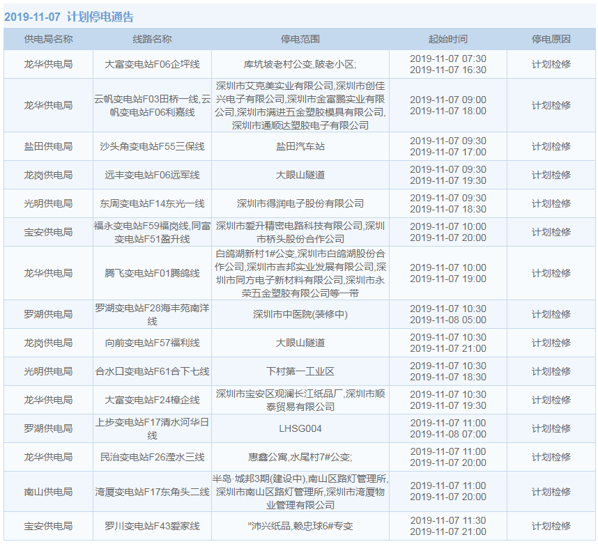 見(jiàn)圳客戶端·深圳新聞網(wǎng)2019年10月29日訊 據(jù)中國(guó)南方電網(wǎng)最新消息:11月1日至11月15日,深圳這些地方將停電!快來(lái)看看有沒(méi)有你家的吧。