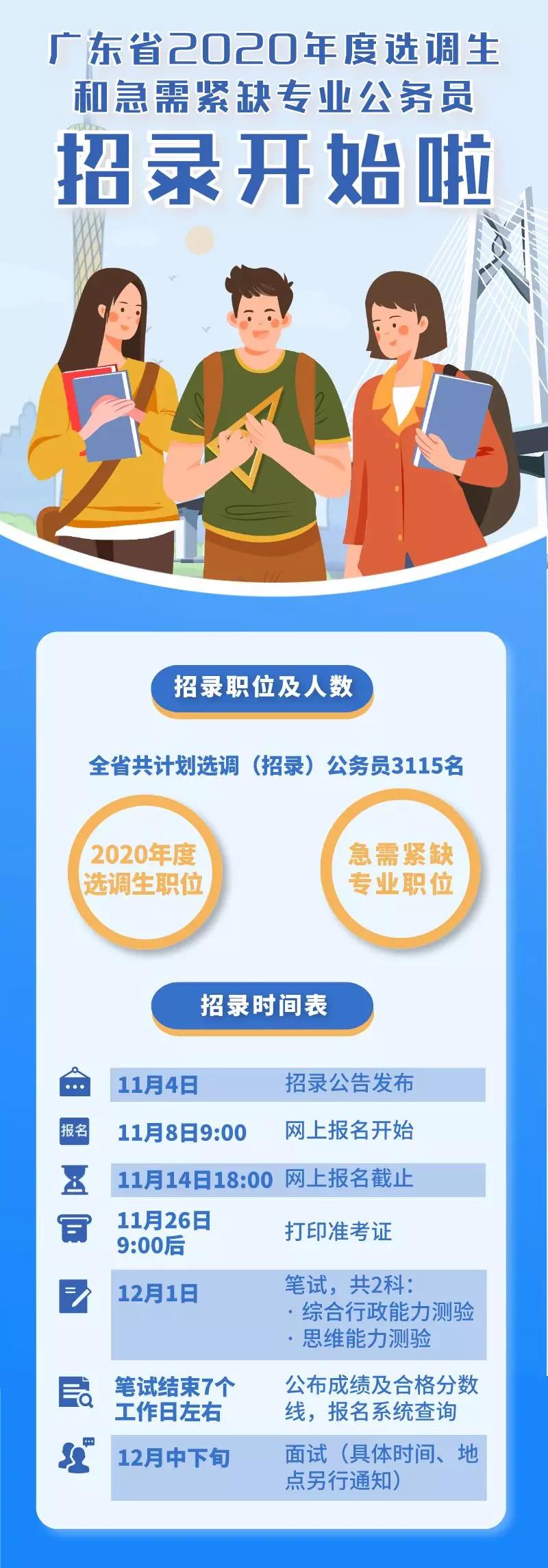 原標題:廣東省2020年度選調(diào)生和急需緊缺專業(yè)公務員招錄11月8日開始報名