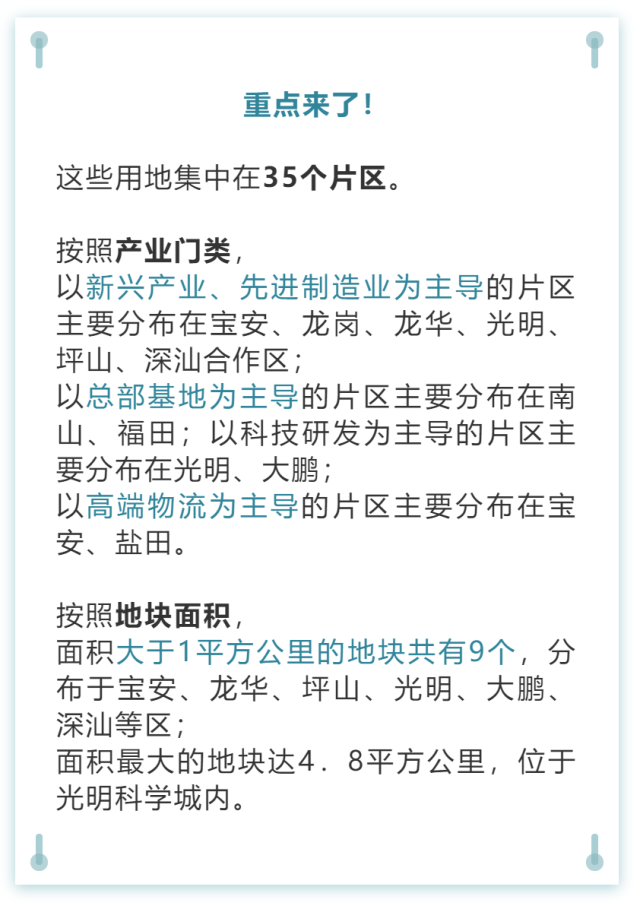 根據(jù)梳理,此次可供應(yīng)產(chǎn)業(yè)用地共35塊,總面積超過(guò)30平方公里。其中深圳市域范圍內(nèi)可供應(yīng)產(chǎn)業(yè)用地約25平方公里,深汕合作區(qū)可供應(yīng)產(chǎn)業(yè)用地約5平方公里,未來(lái)凡是符合深圳產(chǎn)業(yè)導(dǎo)向,符合高質(zhì)量發(fā)展要求的企業(yè)和項(xiàng)目都將得到充足的空間保障。
