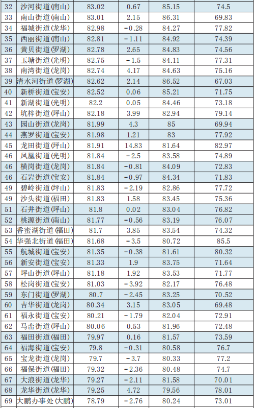 10月份,各區(qū)排名榜上,鹽田區(qū)“勝不驕”,繼續(xù)以優(yōu)異的成績保持第1,拿下“五連冠”,且在今年前10個月的測評中,鹽田區(qū)已經(jīng)8次取得第一名。羅湖區(qū)則“敗不餒”,在去年連續(xù)排名靠后甚至墊底的情況下,毫不氣餒,正視問題,補齊短板,理順機制,今年指數(shù)得分和排名穩(wěn)步提升,10月份更奪得榜眼,現(xiàn)場考察指數(shù)全市第1,轄區(qū)3個街道進入全市排名前6,5個進入前15。而龍華區(qū)和龍崗區(qū)則連續(xù)兩月排在倒數(shù)后三,龍崗區(qū)平湖街道連續(xù)3個月排在后5,應對照測評情況找問題,出實招,加大整治提升工作力度。