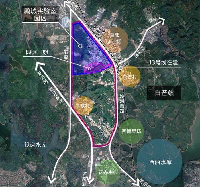 鵬城實驗室目前以留仙洞戰(zhàn)略性新興產(chǎn)業(yè)基地萬科云城一期8棟為實驗室過渡場地。規(guī)劃園區(qū)位于石壁龍園區(qū),坐落于南山西麗湖國際科教城重點規(guī)劃片區(qū)—石壁龍片區(qū)。距離深圳寶安機場12公里,距離規(guī)劃中的西麗高鐵站6公里,對外交通十分便利。同時,基地被鐵崗水庫、羊臺山森林公園、西麗水庫環(huán)繞,自然環(huán)境優(yōu)勢明顯。并且項目靠近深圳大學城,科研創(chuàng)新氛圍濃厚。