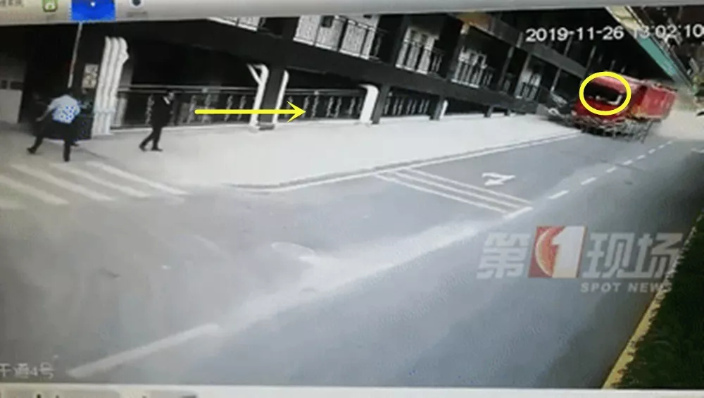 監(jiān)控中的這一幕發(fā)生在羅湖區(qū)的一個(gè)建筑工地旁,事發(fā)時(shí)間是11月26號下午的1點(diǎn)左右,有幾位市民正走在一條陡坡路上,他們聽到后面?zhèn)鱽黹_車的聲音,下意識地往路邊躲避。