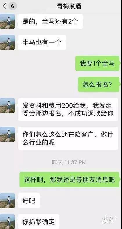 11月28日,一個網(wǎng)名為“青梅煮酒”的跑友在多個跑友群中發(fā)布了關于出售“深馬”參賽名額的消息。多名跑友私信聯(lián)系轉(zhuǎn)賬,沒想到付款后卻立即被拉黑。《深馬開跑在即,花兩百元可買名額?多名跑友微信轉(zhuǎn)賬被騙》