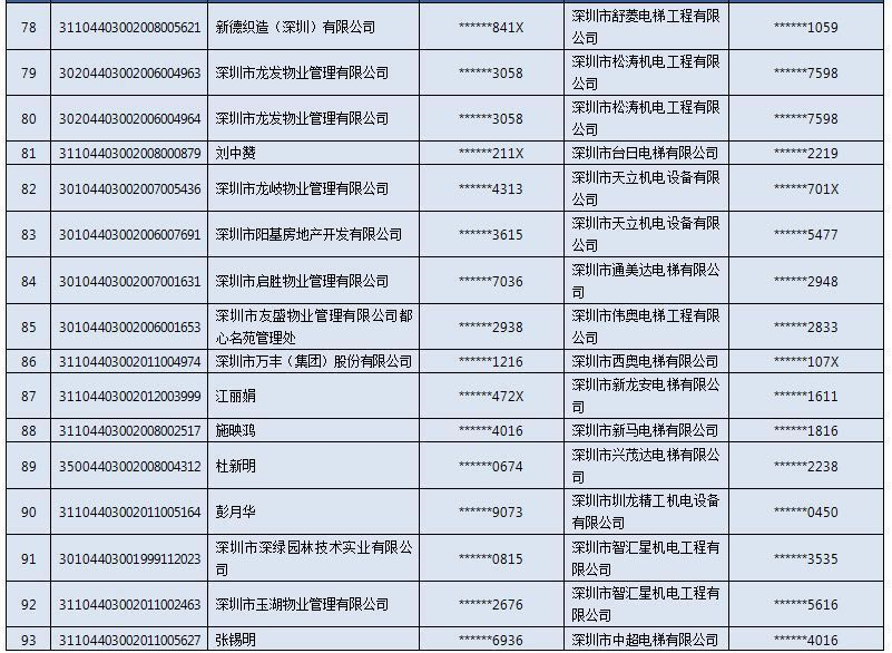 以下是電梯扶梯抽檢不合格“黑名單”