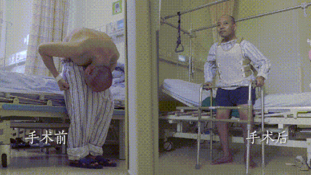 牽動(dòng)全院人心的第三次手術(shù)在9月18日進(jìn)行。這一步要將李華彎成C字型的脊柱拉直。手術(shù)進(jìn)行了幾乎一天,醫(yī)生們找準(zhǔn)脊椎最彎曲的兩處地方,截?cái)啵匦缕唇映芍本€。手術(shù)完成后當(dāng)天晚上,李華20年來第一次能躺平睡覺了!