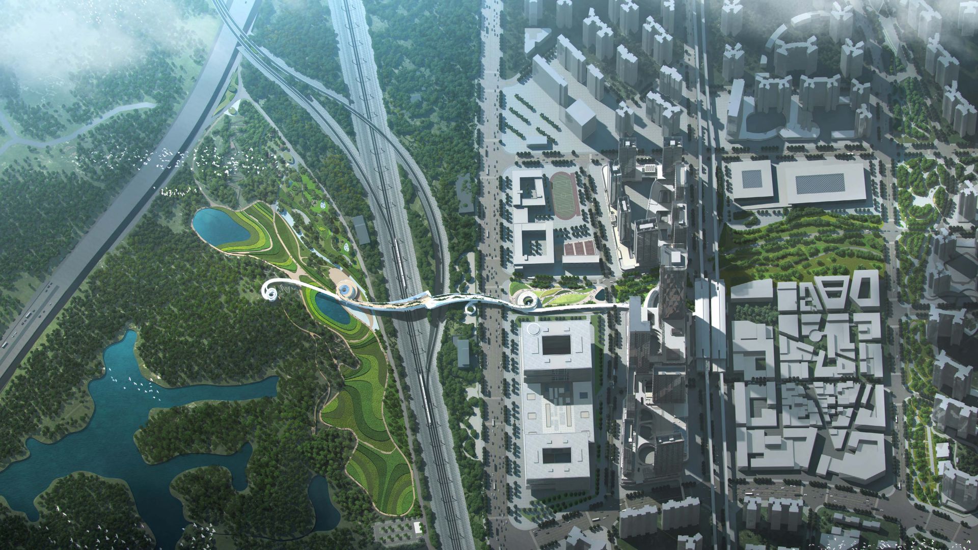 本次深圳北站商務(wù)中心區(qū)紅山跨鐵路段慢行系統(tǒng)規(guī)劃設(shè)計(jì)國際競賽規(guī)劃成果將有助于加快解決片區(qū)山城割裂問題,將山水引入城市中來,提升片區(qū)城市品質(zhì),助力深圳北站商務(wù)中心區(qū)建設(shè)具有全球影響力的“國際會客廳”,實(shí)現(xiàn)自然與城市“握手”。