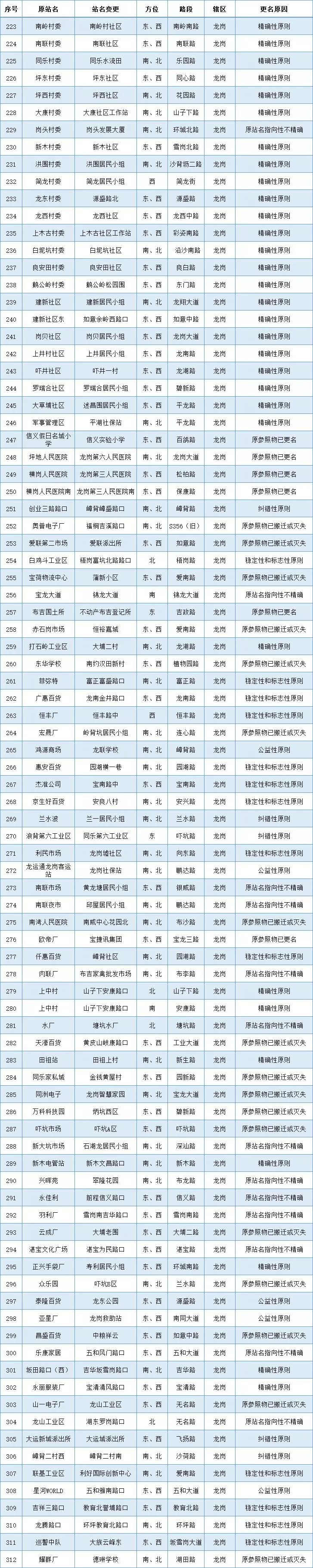 各區(qū)(新區(qū))公交站更名名單