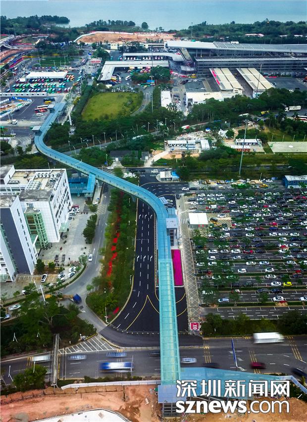深圳灣口岸人行天橋航拍。(深圳市交通運輸局供圖)