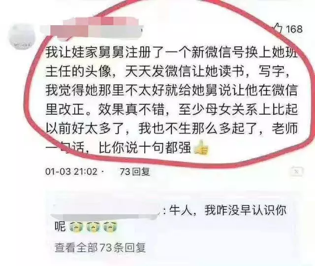 “牛人,我咋沒早點(diǎn)認(rèn)識你呢?”“人才啊”……此奇招一出,家長們紛紛感嘆。也有家長擔(dān)心:“萬一穿幫了,對孩子傷害很大,家長信用大打折扣!”