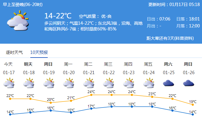 見(jiàn)圳客戶(hù)端·深圳新聞網(wǎng)2020年1月17日訊 大家好,天氣預(yù)報(bào)員小編又上線啦!忍不住劇透一個(gè)好消息——17日深圳會(huì)來(lái)一股冷空氣!事不宜遲,趕緊來(lái)看看最新天氣!