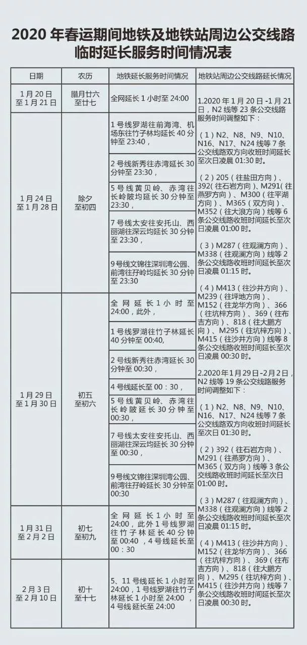 最后呢,再給大家發(fā)一張圖,深圳地鐵全網(wǎng)及周邊公交線延時安排,請收藏好哦!