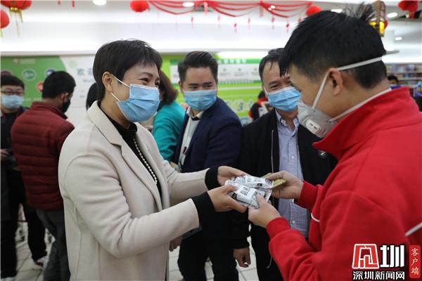 大望社區(qū)黨群服務中心工作人員向一線工作者發(fā)放防感湯。