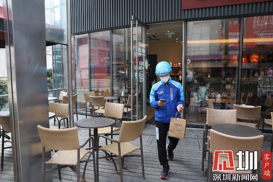 在咖啡店等待商家制作完成,取貨后,王彭輝便馬不停蹄地騎著電動(dòng)車前往訂單上的地址。平日繁華的南山商區(qū),現(xiàn)在空空蕩蕩的,除了偶爾有車輛開過(guò),路上幾乎都是外賣小哥、快遞小哥的身影,“現(xiàn)在就是大家都待在家里,路上人和車少了,我們也能更快地把訂單送達(dá)?!蓖跖磔x說(shuō):“我以前是在梅林那邊工作,剛開始來(lái)南山這邊送外賣的時(shí)候,對(duì)這里的路不熟悉,覺得每個(gè)路口都長(zhǎng)得一樣,抬頭都是大廈,低頭都是人,但是做得久了以后,慢慢的就熟悉了?!?/p>