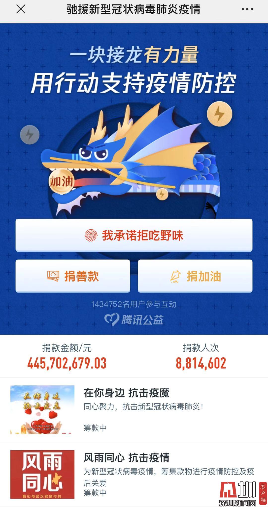 此外,騰訊公益也開通馳援新冠疫情籌集善款的專項(xiàng)平臺(tái),該平臺(tái)上已有53家慈善組織啟動(dòng)執(zhí)行工作。截至2月2日下午6點(diǎn)45分,該平臺(tái)籌集善款445702679.03元,累計(jì)捐款達(dá)8814602人次。目前這些啟動(dòng)執(zhí)行工作的公益組織都在按照騰訊公益平臺(tái)和運(yùn)營規(guī)則進(jìn)行。騰訊公益平臺(tái)也將通過“透明機(jī)制“追蹤這些的項(xiàng)目的執(zhí)行情況。