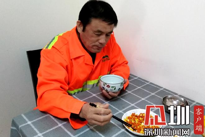 胡蘿卜丁炒玉米,再加一碟土豆絲下飯,這就是黃學(xué)志的午餐。黃學(xué)志說,他有幾年沒回老家了,本來計劃春節(jié)回去過年,順便帶老伴看病,沒想到疫情越來越嚴重,于是就打消了這個念頭。疫情發(fā)生以來,除了日常工作,他還要負責(zé)為值班同事普及疫情防控知識的任務(wù)。從早上7點半到12點半,下午1點半到5點半,他每天在沙頭角7個垃圾轉(zhuǎn)運站、18個公廁來回奔走,給同事配送口罩及消毒用品,檢查他們的身體健康情況?!艾F(xiàn)在是疫情防控關(guān)鍵期,我們也希望為防控工作貢獻出來自環(huán)衛(wèi)清潔行業(yè)的一份力量。”黃學(xué)志說。(見圳客戶端、深圳新聞網(wǎng)記者鄧雪婷)