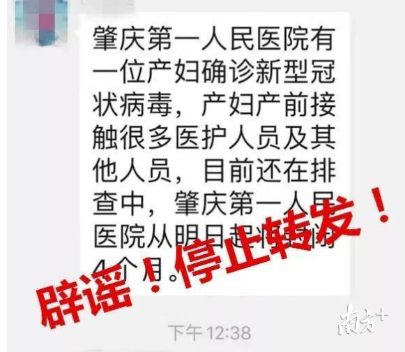 “肇慶第一人民醫(yī)院有孕婦確診,產(chǎn)前接觸很多醫(yī)護人員?,F(xiàn)在要隔離183人,封閉醫(yī)院四個月?!苯?,肇慶的微信群中,這條謠言瘋傳,引發(fā)市民恐慌,不敢去醫(yī)院就醫(yī)。