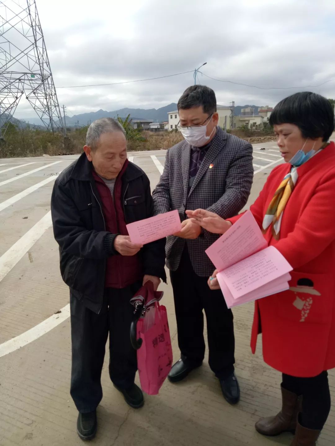 爸爸在發(fā)放抗擊疫情宣傳單。